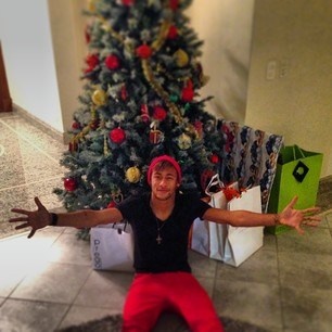 | Năm nay, ngôi sao người Brazil Neymar không được đón Giáng sinh bên cô bạn gái siêu mẫu Bruna Marquezine. Neymar một mình chụp hình bên cây thông Noel. |