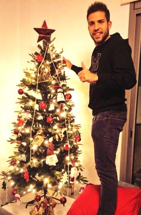 | Jordi Alba tạo dáng bên cây thông Noel. |