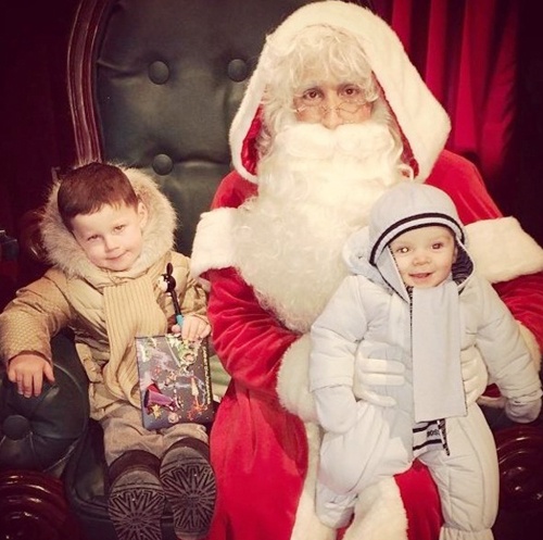 Hai quý tử Kai và Klay nhà Rooney thích thú tạo dáng cùng ông già Noel. |