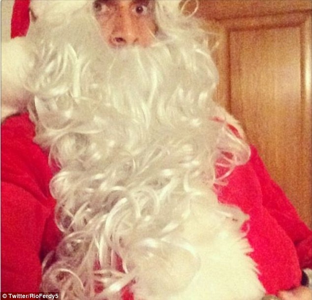 Cầu thủ Rio Ferdinand tự hóa thân thành ông già Noel. |