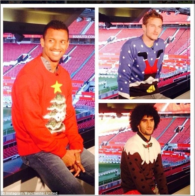 Những chiếc áo màu sắc của Nani, Anders Lindegaard và Marouane Fellaini đủ thắp lên không khí Giáng sinh ở sân Old Trafford |