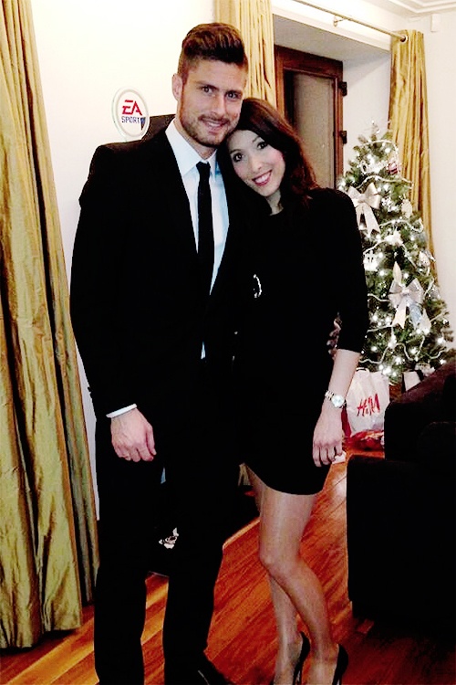 Tiền đạo Olivier Giroud tình tứ bên cạnh bà xã Jennifer. |