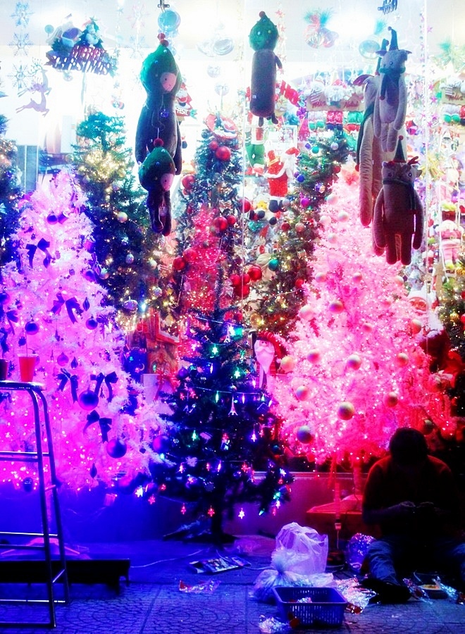 Cho tới sạp tự phát bày bán ở vỉa hè, bạn cũng có thể dễ dàng chiêm ngưỡng vô số thứ hay ho từ những vật dụng trang trí cây thông Noel cho đến thú nhồi bông, ông già Noel, nến và những quả cầu lung linh…