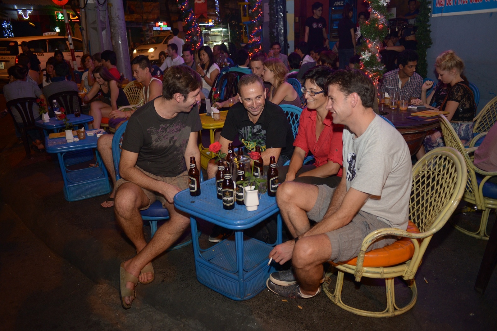 Dọc khu Bùi Viện, nơi được xem là khu vui chơi của “Tây balo”, các quán xá có vẻ chăm sóc kỹ lưỡng không gian bài trí với mục đích chiều lòng khách hàng Tây, giúp họ càm thấy ấm cúng như đang tận hưởng không khí lễ hội ở chính quê nhà của mình.