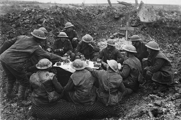 Đây là khoảnh khắc những binh sĩ Anh đang thưởng thức “bữa tiệc Giáng sinh” trong một cứ điểm quân sự ở Mặt trận phía Tây năm 1916. Giờ phút thiêng liêng này là thời khắc binh sĩ ở hai bên chiến tuyến (quân Đức ở chiến tuyến bên kia) tạm ngừng tiếng súng để tận hưởng những giây phút an lành của đêm Giáng sinh. Bình thường, họ là kẻ thù, nhưng trong giây phút ấy, họ tạm gác mọi hận thù, ân oán để dành cho nhau những lời chúc tốt lành. Sau này John Ferguson, một hạ sĩ Anh, phát biểu: “Chúng tôi đã bắt tay, cầu ước cho nhau một Giáng sinh an lành, và chúng tôi nói chuyện như thể đã biết nhau từ lâu để rồi chỉ vài giờ sau chúng tôi lại chĩa súng vào nhau”. Ảnh: Mirror. |