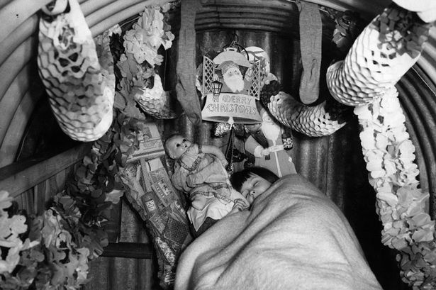 Dù ở trong hầm trú ẩn, nhưng không khí Giáng sinh vẫn rộn ràng. Em bé đang mơ màng về cảnh ông già Noel mang quà đến cho em. Bức ảnh thiêng liêng và rất cảm động này ghi lại bối cảnh năm 1940, khi Chiến tranh Thế giới lần thứ hai đang diễn ra quyết liệt. Ảnh: Mirror. |