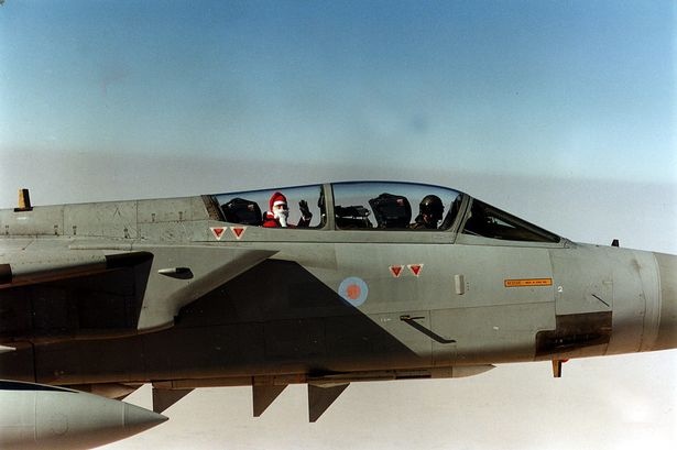 Trong cuộc chiến Vùng Vịnh năm 1990, ông già Noel đã sử dụng chiếc Tornado F3 để đem đến những giây phút tuyệt vời cho người lính trên chiến trường. Ảnh: Mirror. |