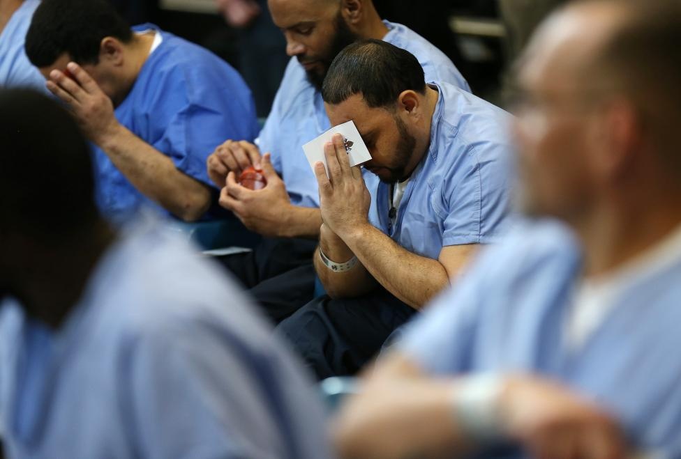 Một số tù nhân rơi lệ sau khi nghe Giáo hoàng khuyên răn.