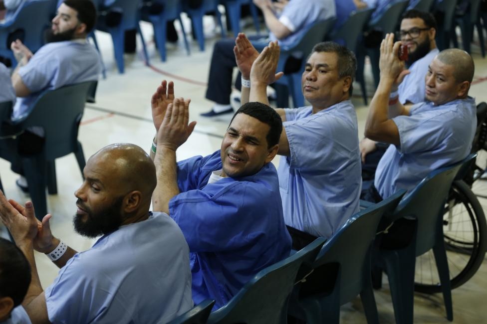 Tù nhân vỗ tay hò reo sau khi Giáo hoàng kết thúc bài phát biểu.