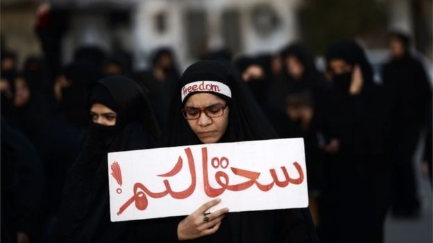 | Thanh niên ở Bahrain biểu tình để phản đối vụ hành quyết Nimr al-Nimr ở Saudi Arabia. Ảnh: AFP |