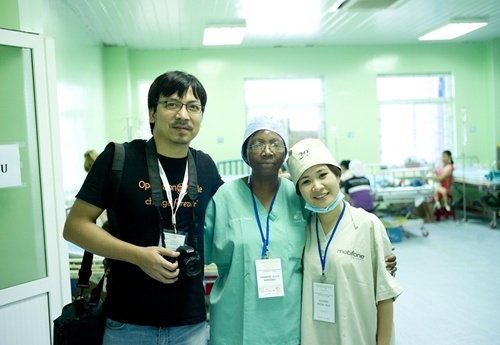 | Giáo sư Cù Trọng Xoay cùng vợ trong chương trình phẫu thuật tại Quảng Ngãi – 6/2013. |