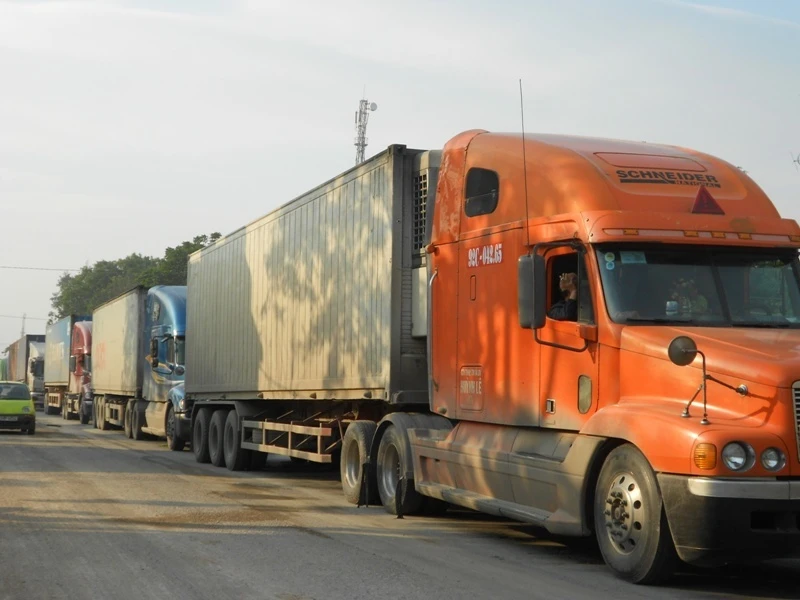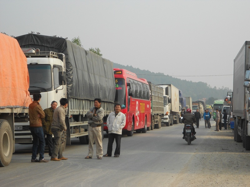 | Nhiều tài xế đứng chờ, tỏ ra sốt ruột vì các xe chủ yếu chở hàng Tết. “Nếu chậm giao hàng chúng tôi sẽ bị phạt”, anh Tâm (tài xế) nói. |