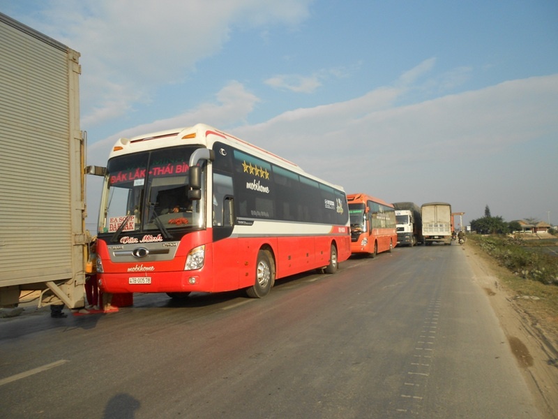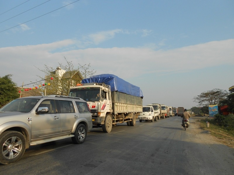 | Tình trạng trên xảy ra từ rạng sáng nay. Hàng trăm xe các loại nối đuôi nhau đứng dài hơn 10km qua các xã Hải An, Hải Ninh, Hải Châu (Tĩnh Gia) và nhiều xã ở huyện Quảng Xương. |