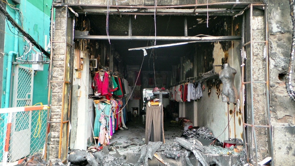 | Cửa hàng thời trang bị cháy phần mặt tiền đường Trần Quốc Thảo. |