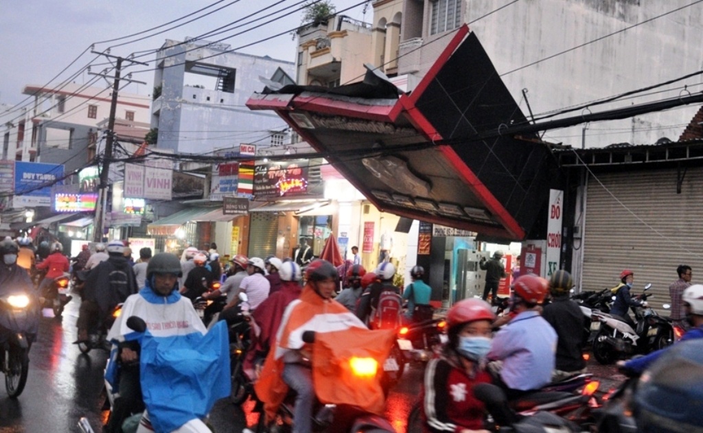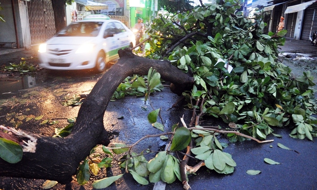 Cơn mưa lớn và gió lốc khoảng 20 phút làm nhiều cây xanh, biển hiệu tại khu vực quận Tân Bình gãy đổ. Nhiều tuyến đường huyết mạch lâm vào tình trạng ùn tắc suốt 3 giờ.
