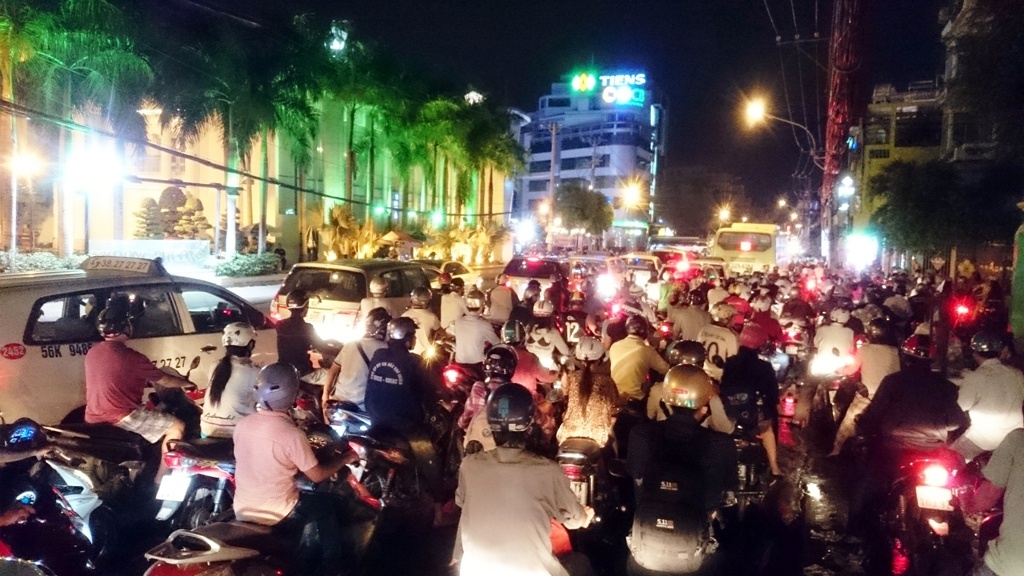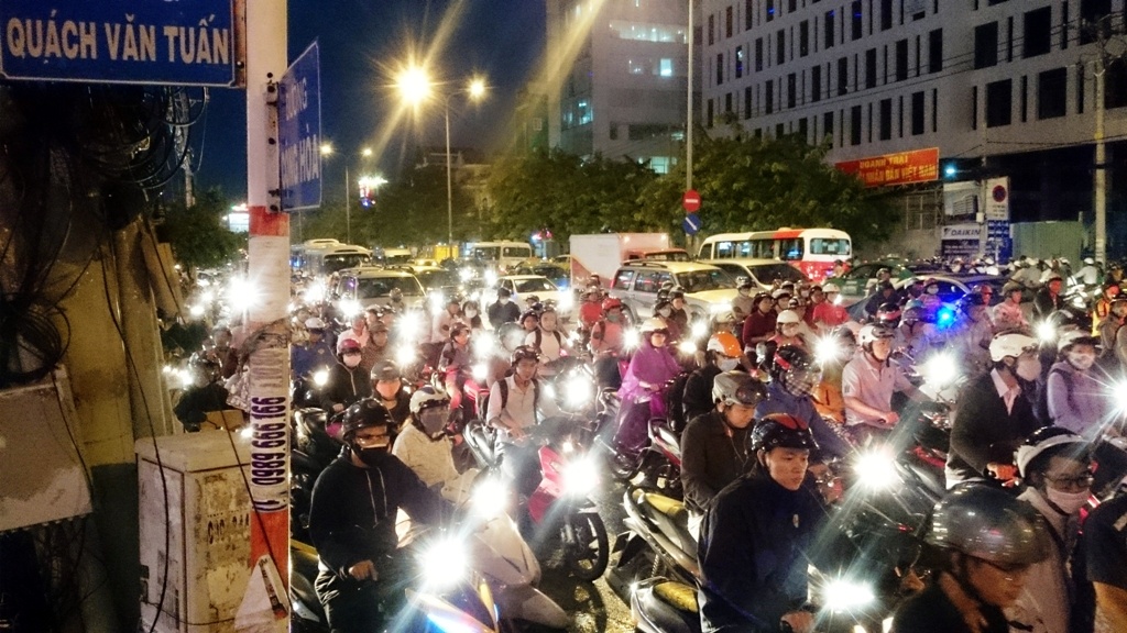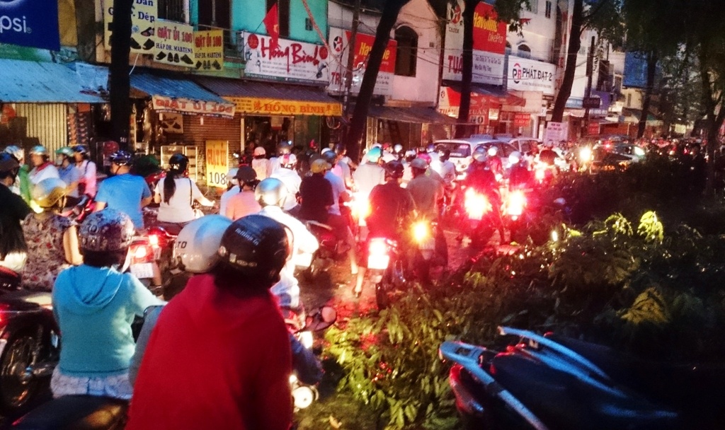 | Khu vực đường Hoàng Văn Thụ kéo dài đến trung tâm triển lãm Tân Bình bị ùn tắc đến gần 20h. |