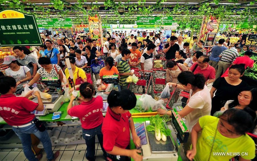 | Trước đó một ngày, đáp lại lời kêu gọi phòng chống bão của chính phủ, hầu như mọi người dân ở thành phố Hà Khẩu đều đổ tới siêu thị để tích trữ rau quả và nước ngọt. |
