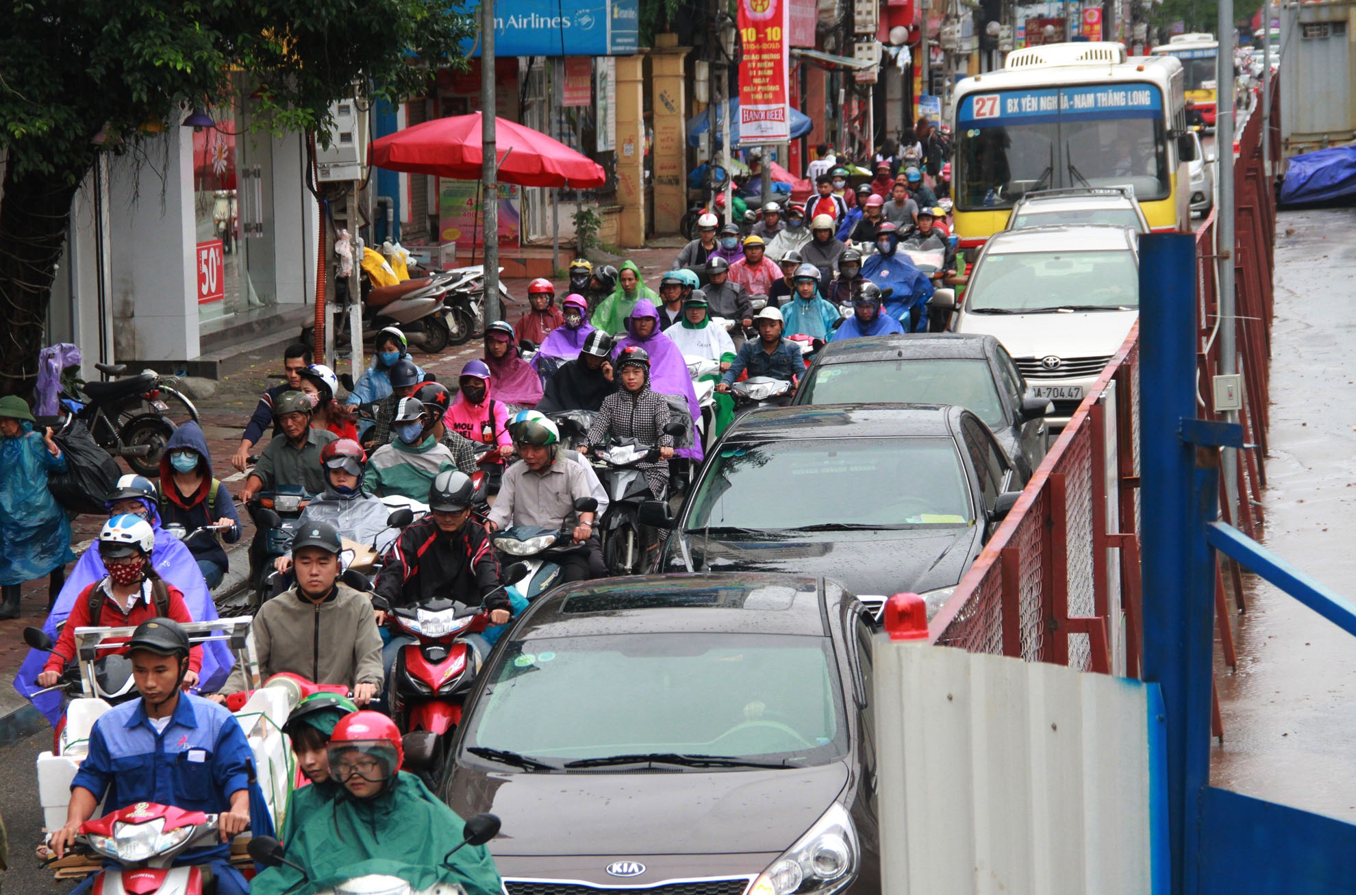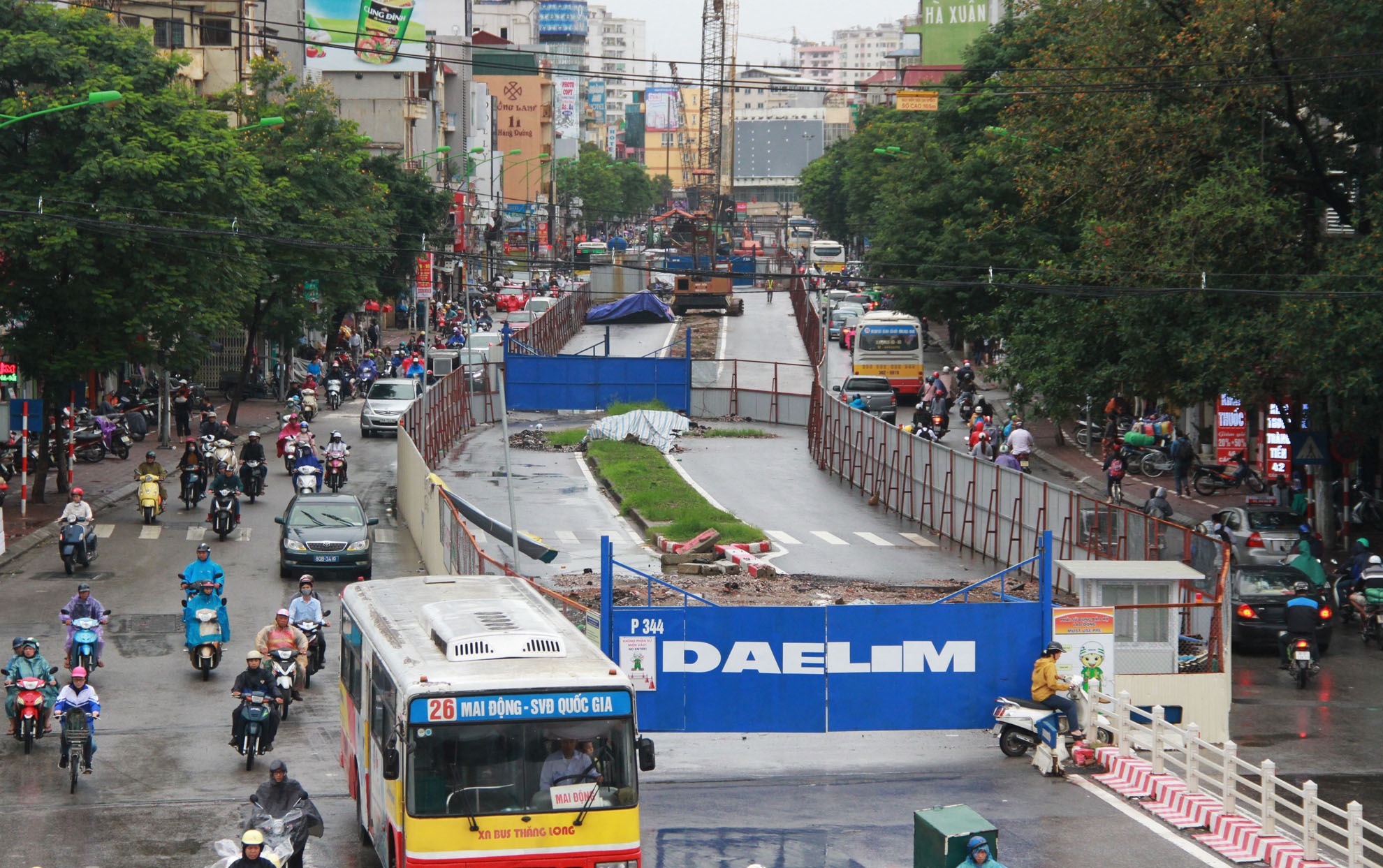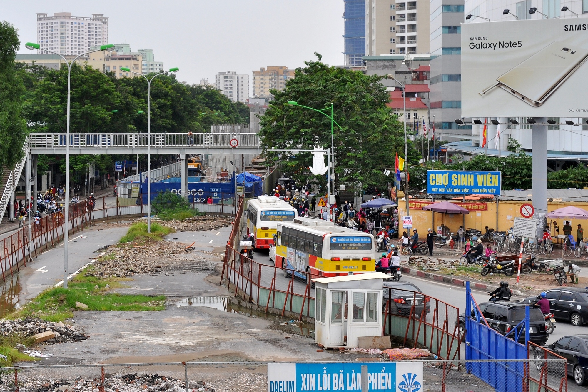 | Khi dự án đường sắt đô thị tuyến Nhổn - ga Hà Nội thi công các hạng mục trụ nhà ga số 6 và 7, các nhà thầu dựng rào chắn dọc tuyến đường Xuân Thủy - Cầu Giấy khiến tình trạng giao thông nơi đây liên tục bị ùn tắc kéo dài. |