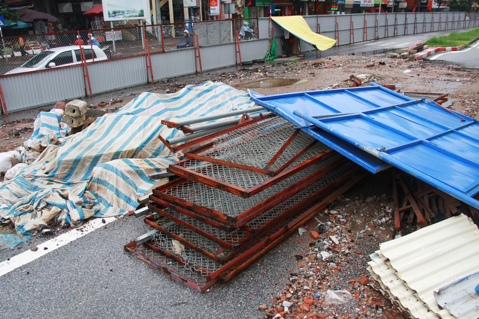 | Trong một lô cốt đầu đường Cầu Giấy, rào sắt, mái tôn ngổn ngang gỉ sét. |