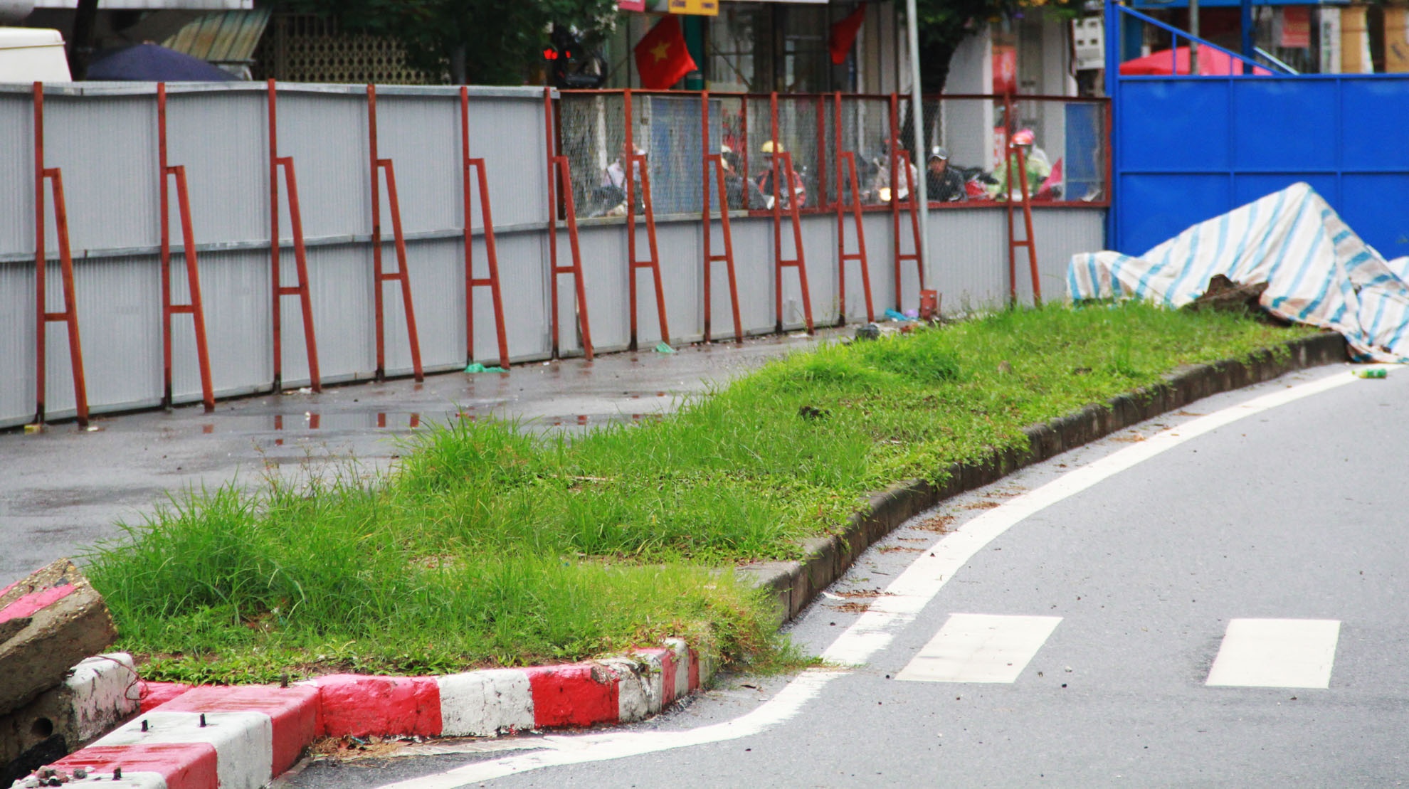 | Một đoạn dải phân cách cũ cỏ mục xanh mướt. |