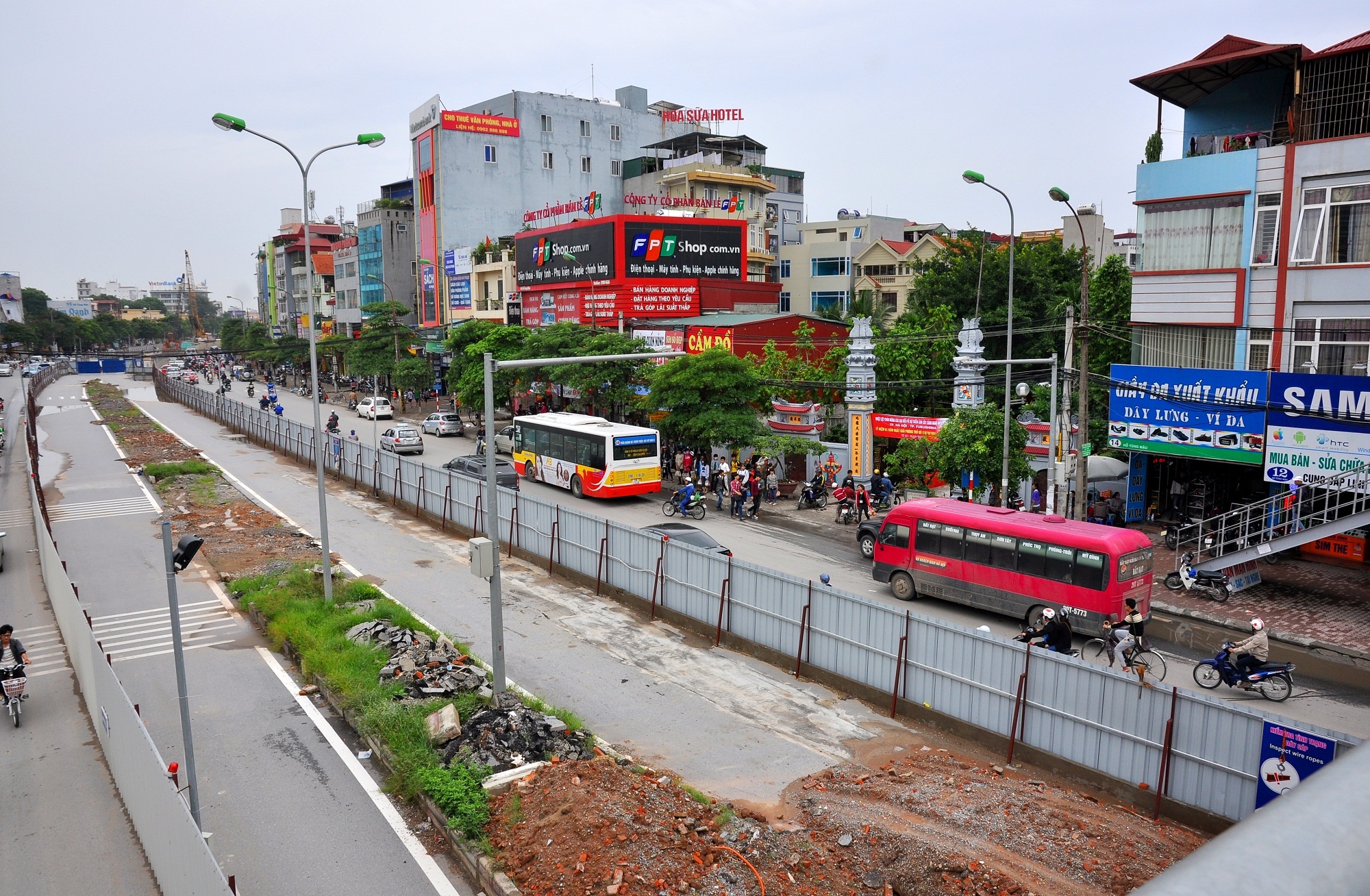 Ngày 11/10, ghi nhận của phóng viên trên tuyến đường khoảng 2 km này có 9 lô cốt rào chắn chiếm khoảng 90% chiều dài và chỉ tại các nút giao, ngã 3, ngã tư mới có lối rẽ sang làn đường ngược chiều.