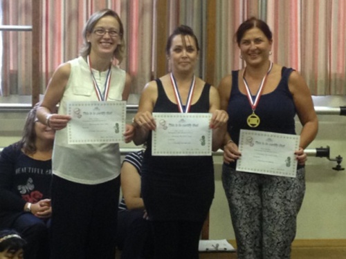 | Ba trợ lý giáo viên được nhận bằng khen và huy chương. |