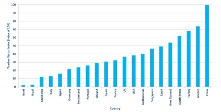 Chỉ số địa vị giáo viên toàn cầu năm 2013 xếp hạng các quốc gia dựa trên một số tiêu chí, bao gồm: vị trí của nghề giáo viên so với các nghề khác trong suy nghĩ người dân, thu nhập của giáo viên có được đánh giá là công bằng hay không, và người dân có khuyến khích con cháu mình theo nghề này hay không.