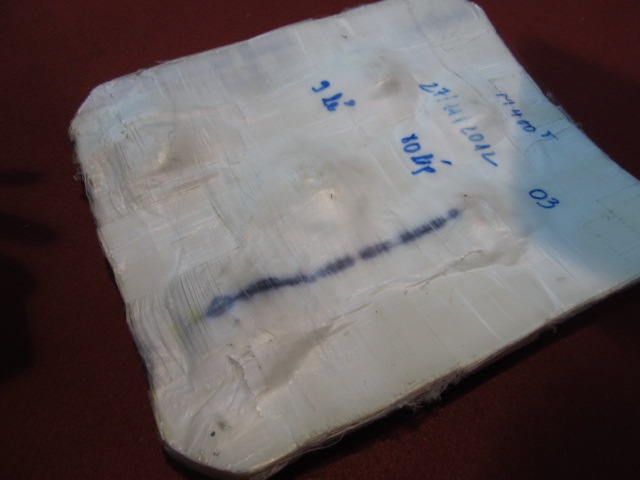 | Tuy nhiên, viên đạn đã không thể xuyên qua tấm gia cường. Tấm gia cường nặng 1,3 kg còn toàn bộ áo chống đạn nặng khoảng 2 kg. |