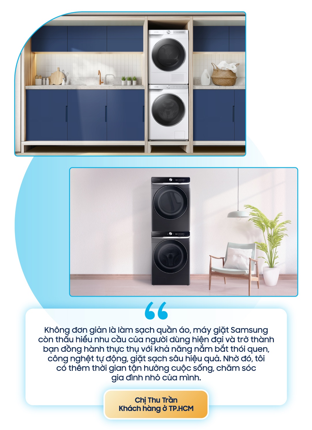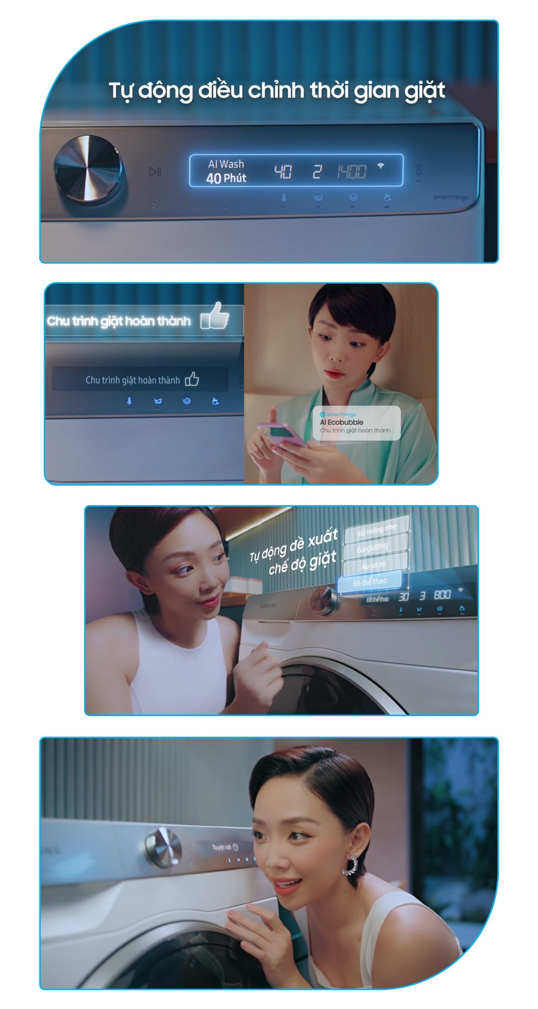 Việc giặt giũ ngày càng đơn giản hơn nhờ bảng điều khiển thông minh AI Control. Tích hợp trí tuệ nhân tạo, máy giặt có khả năng ghi nhớ thói quen sử dụng của người dùng rồi từ đó tự động đề xuất chế độ giặt và cài đặt yêu thích mà không cần tùy chỉnh trước mỗi lần giặt. Về mặt thiết kế, bảng điều khiển đã được đơn giản hóa thành màn hình LED tiếng Việt dễ đọc, dễ hiểu. Thông qua ứng dụng SmartThings, người dùng dễ dàng điều khiển và quản lý việc giặt giũ ở mọi lúc mọi nơi.