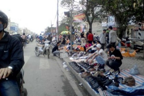 Dọc vỉa hè các tuyến phố trên địa bàn Hà Nội, nhất là tại khu vực tuyến đường 32, đoạn qua Diễn, Nhổn…, các sạp bán giày dép vỉa hè "mọc" lên ngày càng nhiều. Với biển quảng cáo viết tay nhưng thu hút được ánh mắt hiếu kỳ của rất nhiều người - “Giày da xịn”, “giày da siêu rẻ”, “giày da xịn giá 16.000 đồng”… Tại đây, giày “da xịn” của nam được bán với giá rất rẻ, chỉ từ 150.000 đồng đến 250.000 đồng/đôi, tùy kiểu.