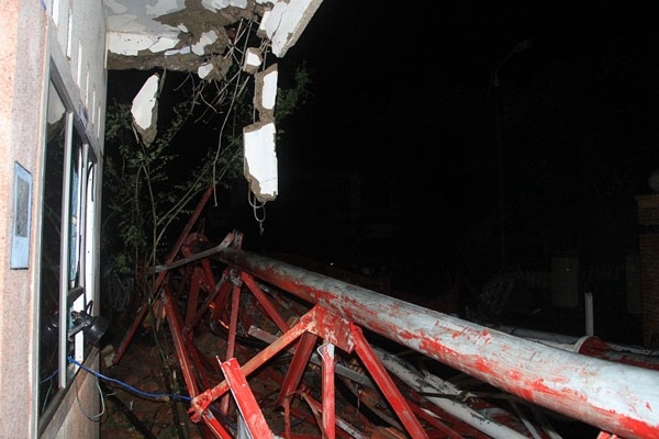 | Chiếc cột phát sóng cao 150m đã đổ ập xuống sân khiến 2 người chết. |