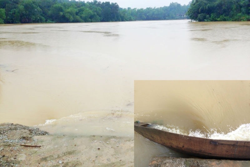 | Đoạn sông nơi thầy cô giáo bị lật thuyền và miệng cống (ảnh nhỏ) - nơi cô Mạnh bị nuốc cuốn vào. |