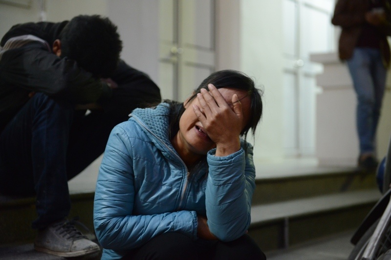 | Người nhà các nạn nhân đứng chờ thông tin ở bệnh viện 108. |