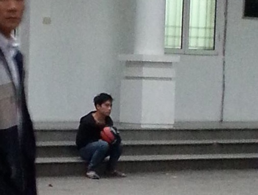 | Nguyễn Phú Tuân thẫn thờ chờ thấy mặt 2 người họ hàng xấu số. |