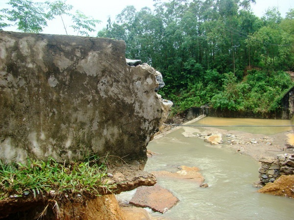 | Một góc còn lại của đập Phân Lân bị vỡ. |