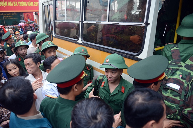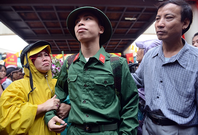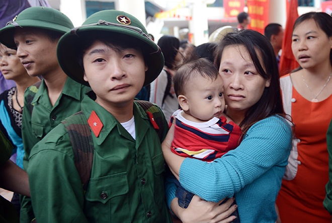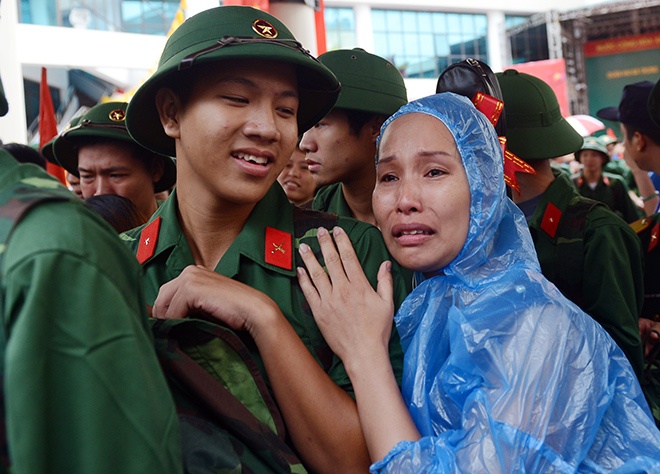 | Nhiều người thân, cha mẹ, anh chị em, ông bà rớt nước mắt chia tay người thân nhập ngũ. |