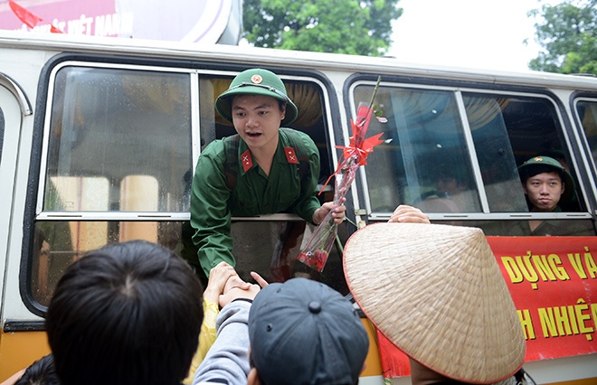 Sáng 6/9, hàng trăm thanh niên Hà Nội đã lên đường nhập ngũ, không ít trong số đó vừa đỗ đại học, nhiều chàng trai đã viết đơn tình nguyện tòng quân.