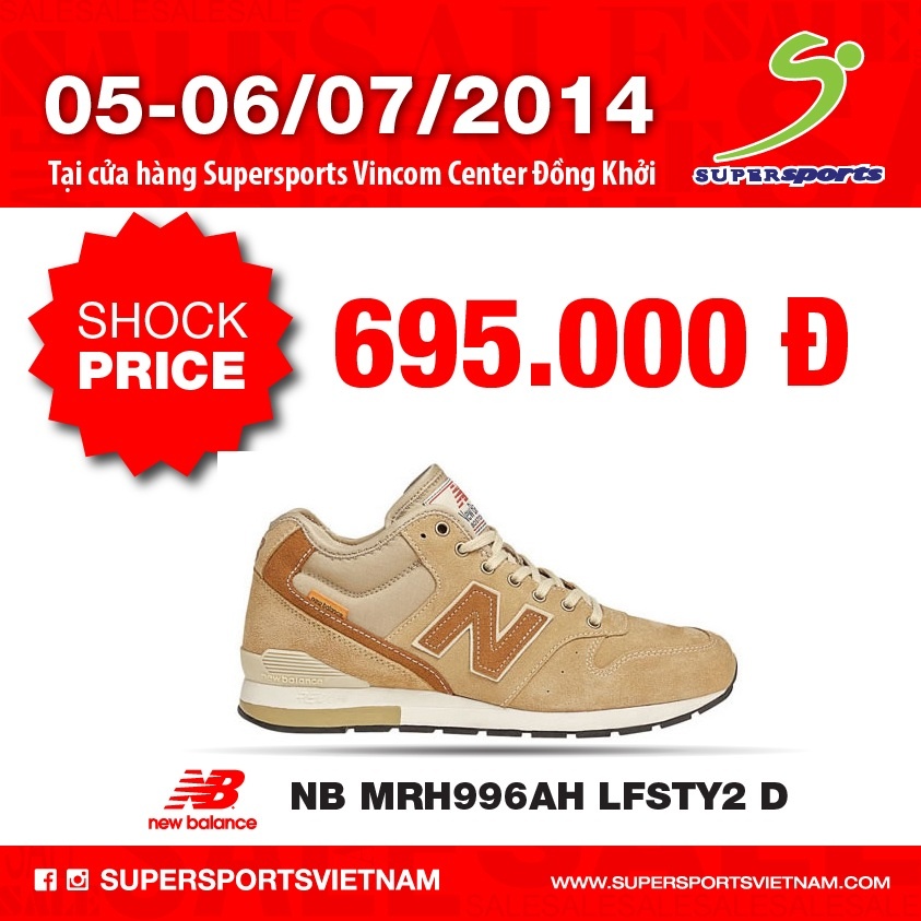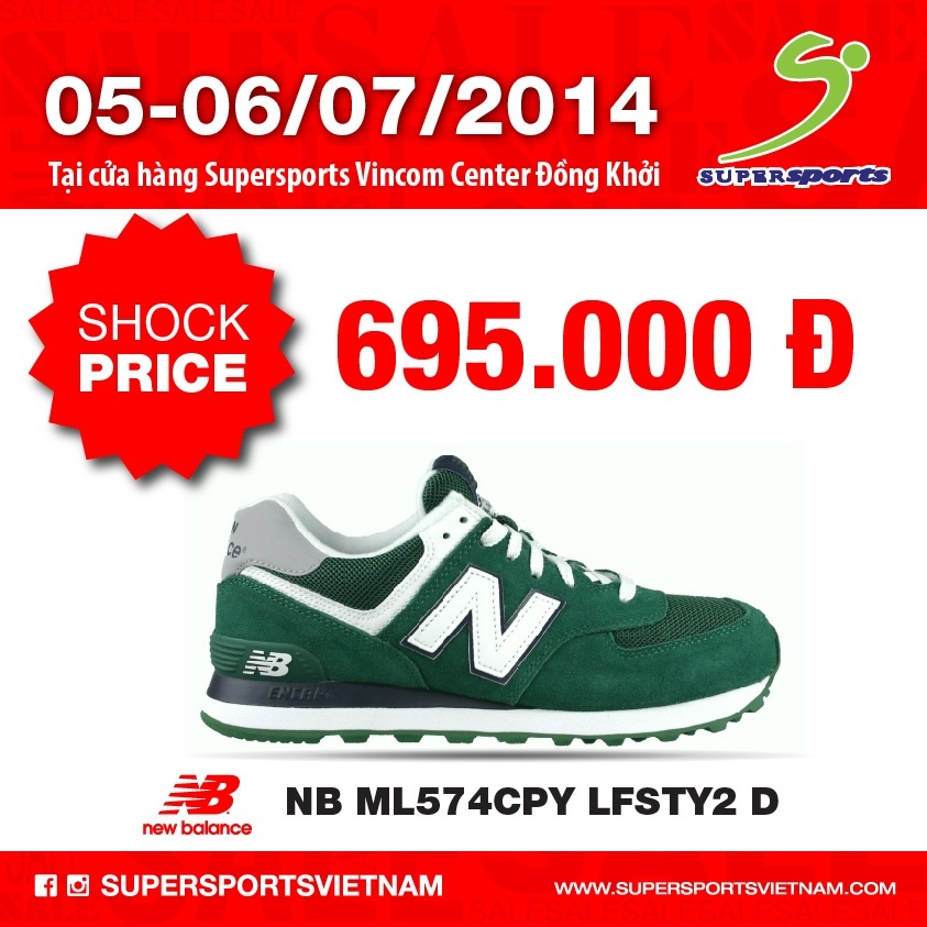 Và trong 2 ngày cuối tuần (5-6/7), thương hiệu tham gia trong chương trình sale cuối tuần sẽ là New Balance. Hơn 40 mẫu giày mới (giày chạy bộ lẫn giày thời trang) sẽ có một mức giá sốc duy nhất là: 695.000 đồng
