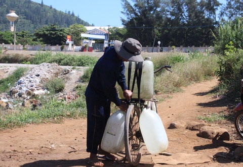 | Công việc thường ngày của người dân huyện đảo: lấy nước ngọt mang về gia đình sinh hoạt. |