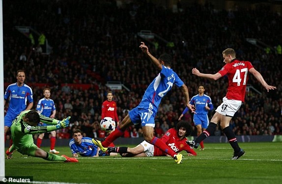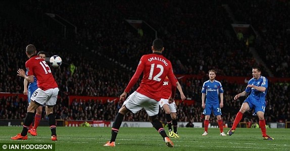 | Phút 31, James Wilson mở tỷ số cho M.U bằng cú sút chân trái từ đường chuyền của Fellaini. |