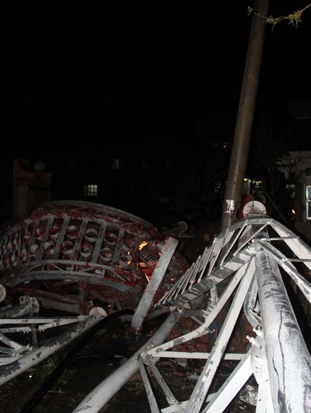 | Tháp ăngten bị đổ khiến 2 người chết (ảnh VNN) |
