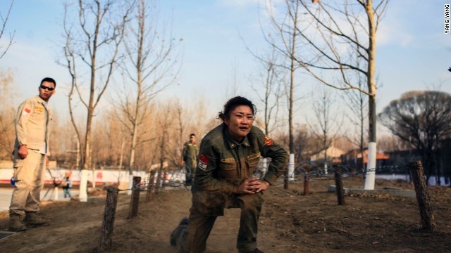 | Các nữ học viên trải qua quá trình khổ luyện trước khi trở thành vệ sĩ. |