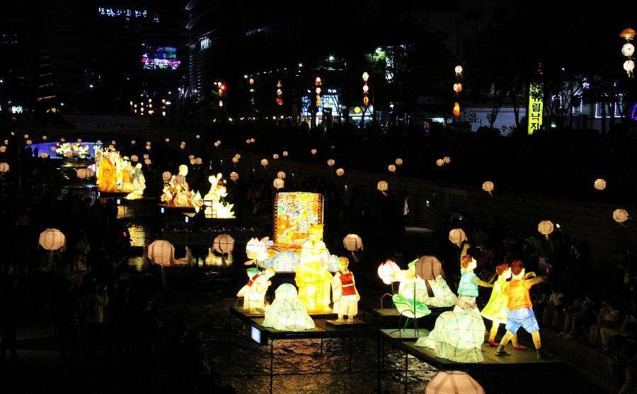 | Người dân Seoul thả đèn lồng xuống sông trong lễ cầu siêu. |