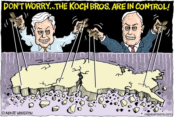 | Biếm họa phê phán anh em nhà Koch đang kiểm soát nền chính trị Mỹ? |