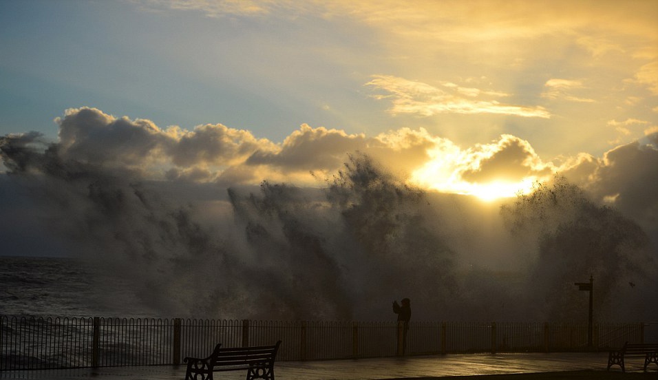 | Khung cảnh đẹp nhưng bão, thủy triều đang đe dọa những người dân vùng ven biển nước Anh. Ảnh: PA. |