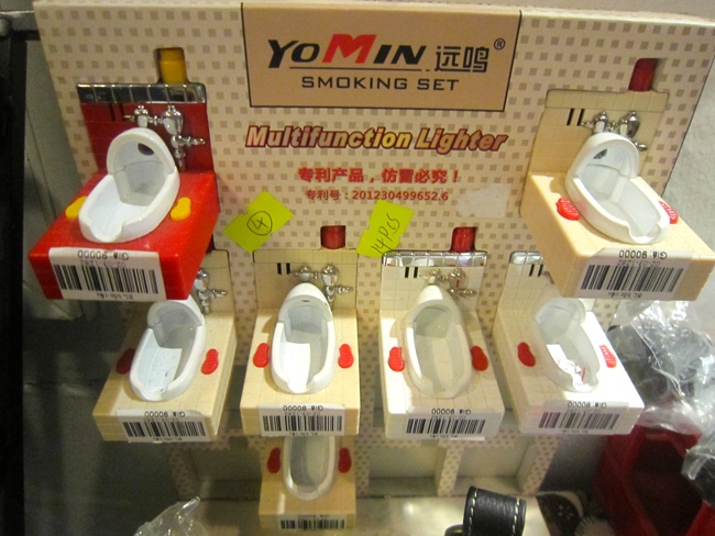 | Hầu hết các bạn trẻ đều thích thú khi được sở hữu những món đồ chơi lạ mắt và kì dị. Không ít người còn dùng vật phẩm “không đụng hàng” để thể hiện “đẳng cấp”. Bạn Trần Nam Linh, học sinh trường THPT Việt Đức, Hà Nội, chia sẻ: “Mình có thói quen săn những đồ dùng học tập độc, lạ, như tẩy hình robot, hộp bút hình khẩu súng… Hàng ngày lên lớp được nhìn chúng, cảm giác có hứng thú học bài hơn rất nhiều!”. Trong ảnh là những dụng cụ đa năng - bật lửa, mở bia hình bồn cầu. |