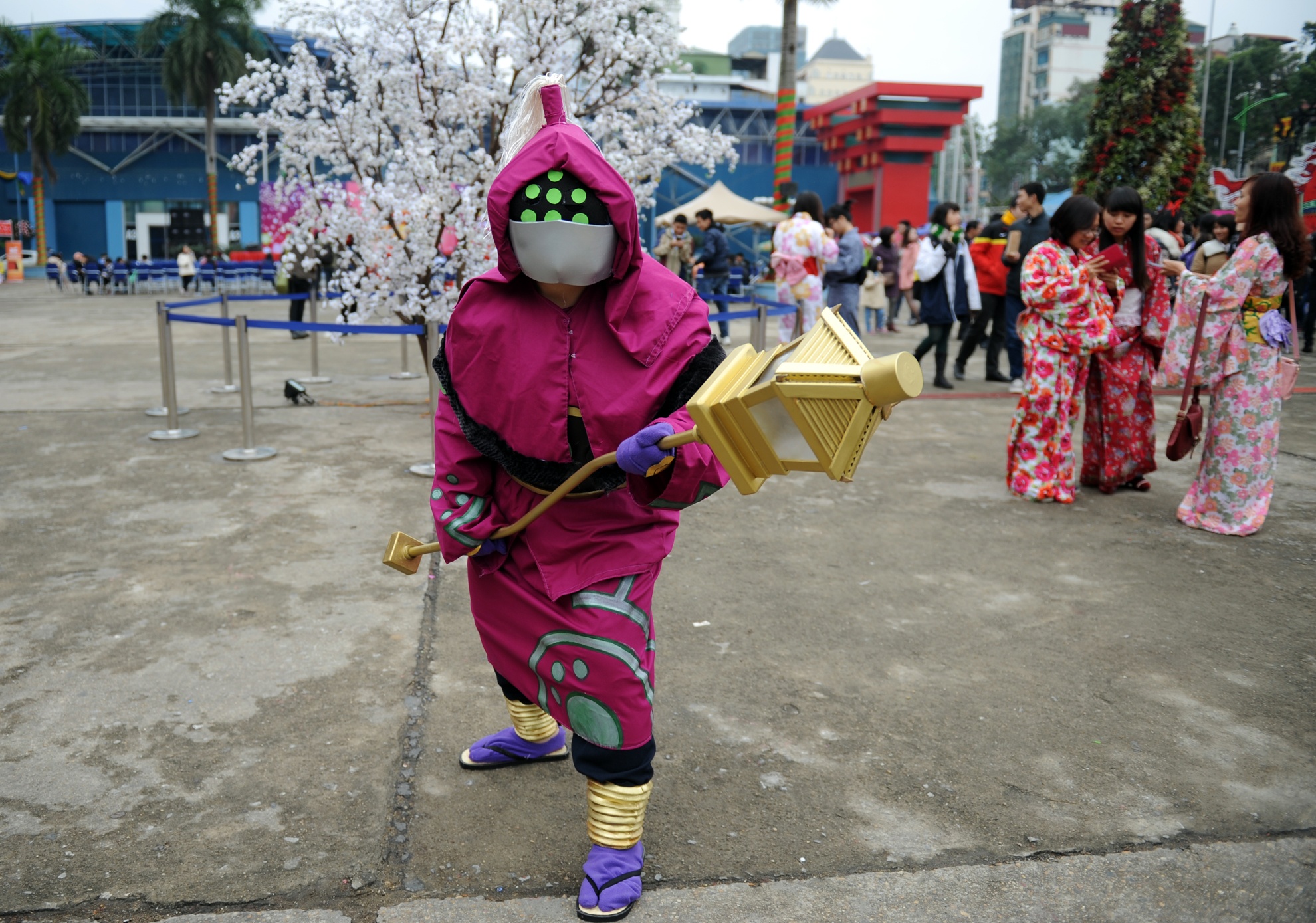 | Điểm thu hút của buổi lễ này đó là sự tham gia của các bạn trẻ đã hóa thân thành các nhân vật truyện tranh, hoạt hình, game của Nhật Bản. |