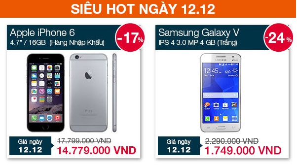 Khách hàng có cơ hội mua hàng loạt mặt hàng tiện ích và hiện đại trong ngày hội mua sắm trực tuyến 12/12, với mức giá rất hời. Đơn cử như TV LED LG 32 HD còn 3,999 triệu đồng, máy ảnh Canon PowerShot giá 949.000 đồng, đặc biệt là iPhone 6 16GB chỉ còn 14.779.000 VNĐ (từ 0h ngày 12/12).