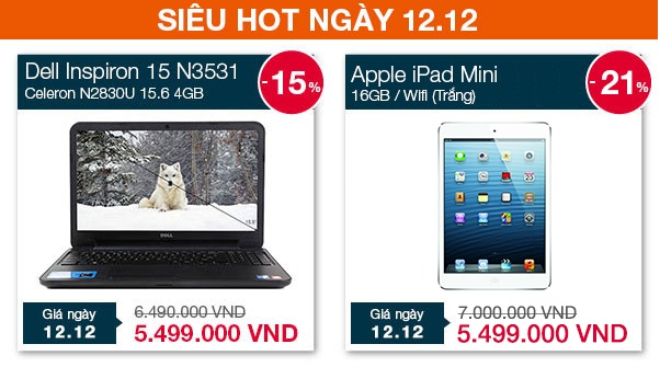 | Hàng ngàn sản phẩm hot giá cực sốc chỉ trong 12/12. |