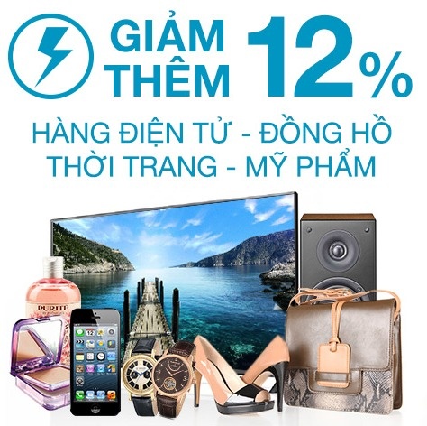 | Giảm thêm 12% các mặt hàng điện tử, mỹ phẩm, đồng hồ, thời trang. |